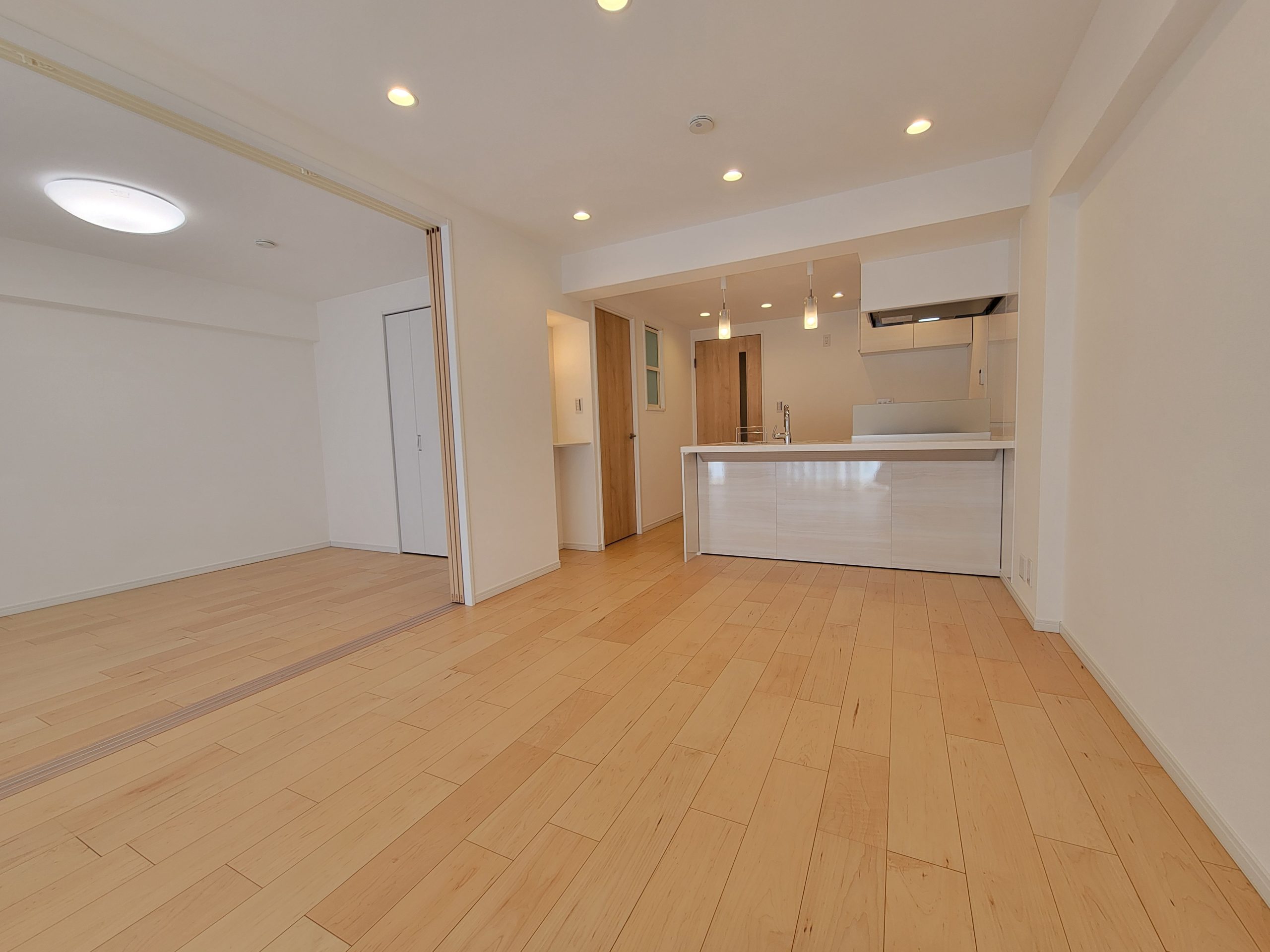 南東向きのリビングには、家族の会話が弾む「対面式キッチン」を新設。水回り設備から壁紙クロス、床材まで全て新しく貼り替えたため、室内は新築のような清潔感にあふれています。